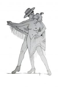 Al igual que en las obras de danza, de teatro y de flamenco, hay momentos, escenas, partes de la obra dónde se crean fotografías para el recuerdo. Queríamos reflejar esa imagen en una ilustración flamenco erótica.
