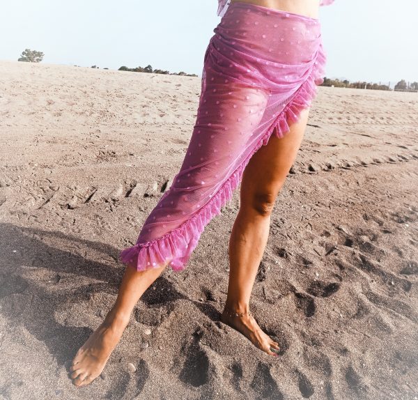 Modelo Liviana; Elegante, sensual y muy práctica. Falda de tul con topitos en violeta. Te caerá hasta el tobillo y por la elasticidad del tejido podrás ponértela y quitártela fácilmente.